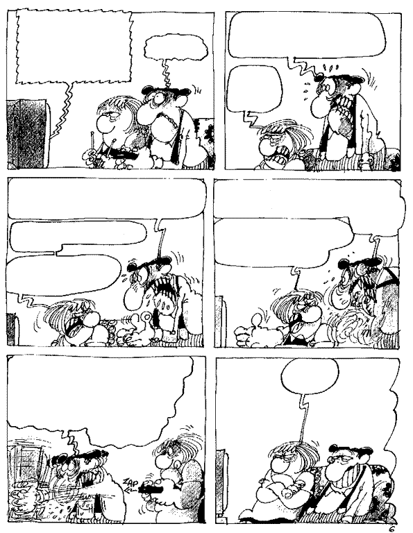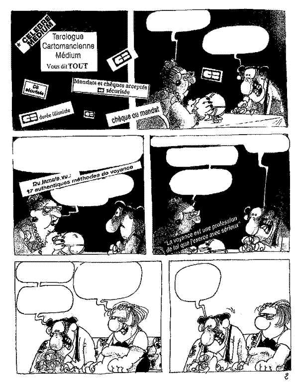 Deux séries de deux planches aux bulles vidées qu'il s'agit de faire remplir aux apprenants, individuellement ou par groupe de 2 ou 3.