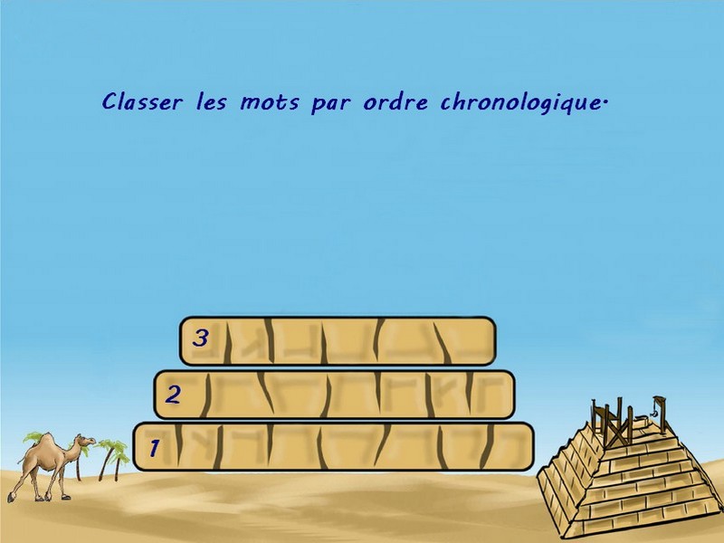 Faites glissez les mots à leur place avec la souris pour les classer par ordre chronologique.