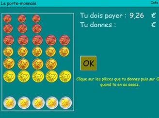 à des niveaux de difficulté différents. Il permet d'apprendre à compter, rendre la monnaie, préparer une somme demandée.